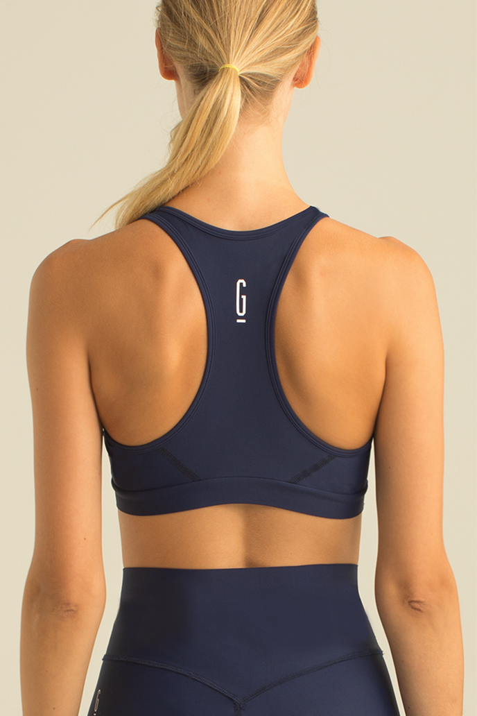 Dark blue Tina Sport Bra is designed to fit like a second skin. Crafted from a high-tech breathable fabrication offering a skinny texture that molds your body for ultimate comfort.